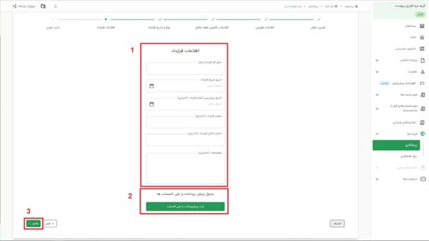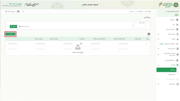 با انتخاب گزینه “ثبت قرارداد جدید” یک قرارداد پیمانکاری ایجاد کنید.