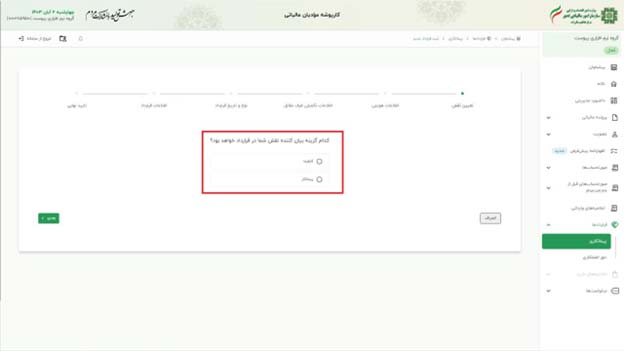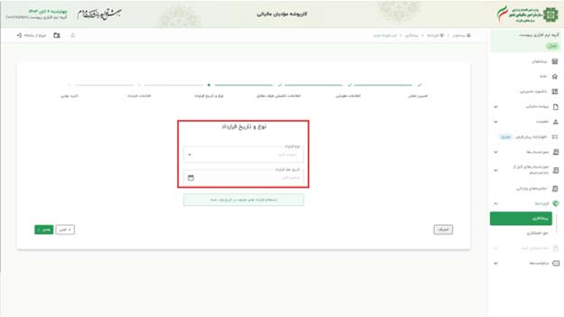 در این بخش نوع قرارداد پیمانکاری و تاریخ عقد قرارداد را مشخص کنید