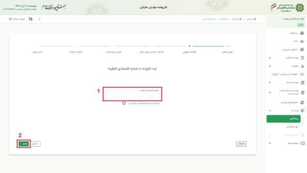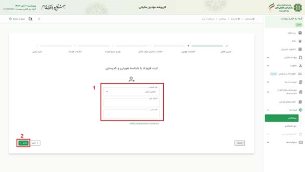 برای این کار “ثبت قرارداد با شناسه هویتی و کدپستی را انتخاب کنید”