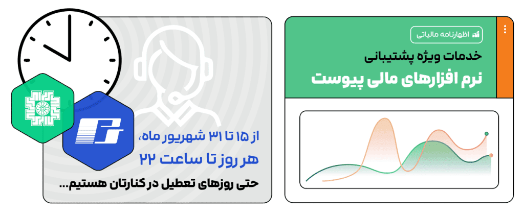 به همین منظور و جهت رفع مشکلات و پاسخگویی به سوالات خریداران، تیم پشتیبانی نرمافزارهای مالی پیوست از ۱۵ شهریور تا ۳۱ شهریور، هر روز تا ساعت ۲۲ (حتی روزهای تعطیل) آماده ارائه خدمات ویژه پشتیبانی اظهارنامه مالیاتی ۱۴۰۴ خواهد بود.