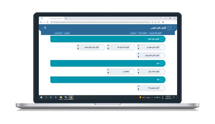 گزارش موجودی کالا در انبارهای مختلف بر حسب دسترسی انبارداران به آنها داده می شود. انبارها برحسب نیاز در حوزه قطعات سخت افزاری، تاسیساتی، مواد مصرفی و … تعریف می شوند.