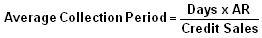 که Days تعداد روز در پریود مورد نظر(مثلا ۳۶۰ روز در سال) و AR مانده حساب های دریافتنی و Credit Sales مانده بستانکار فروش است.