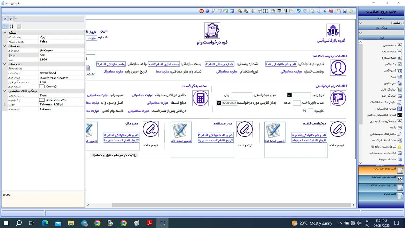 در نرم افزار، می توانیم انواع فرم ها و فرآیندهای مرتبط با صدور وامهای مختلف را پیاده سازی کنیم، در این فرمها می توانیم اطلاعات احکام حقوقی یا سوابق وامهای قبلی را نمایش دهیم و انواع محاسبات را برای کنترل سقف وام، مبلغ اقساط و … انجام دهیم.
