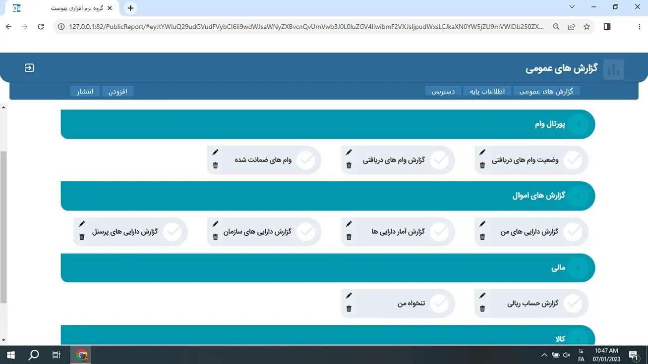 از گزارشهایی که می توان در پورتال پرسنلی به کارکنان سازمان نمایش داد اطلاعات وامهای دریافتی ، اطلاعاتی وامهایی که ضامن شده ایم و … می باشد.